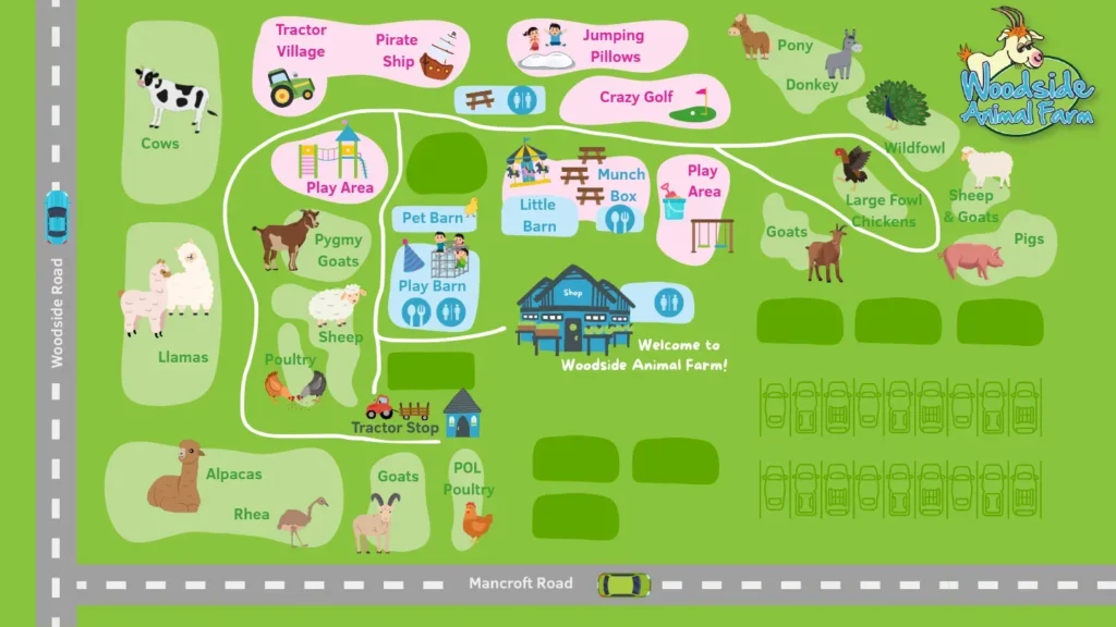 Woodside Animal Farm is a hands-on, family-oriented farm park located in Slip End, near Luton in Bedfordshire. It is a place designed specifically for close encounters with animals and active play, making it a staple for locals with young children.