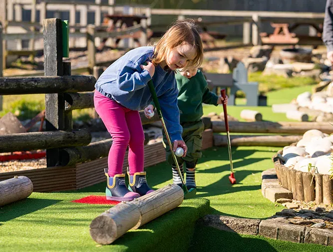 Play Areas: There are significant indoor and outdoor play zones, including bouncy castles, trampolines, and a popular “crazy golf” course.