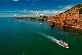 Jurassic Coast Cruises: Witness 185 million years of Earth’s history, featuring dramatic red Triassic cliffs and rock formations at Ladram Bay and Sidmouth.