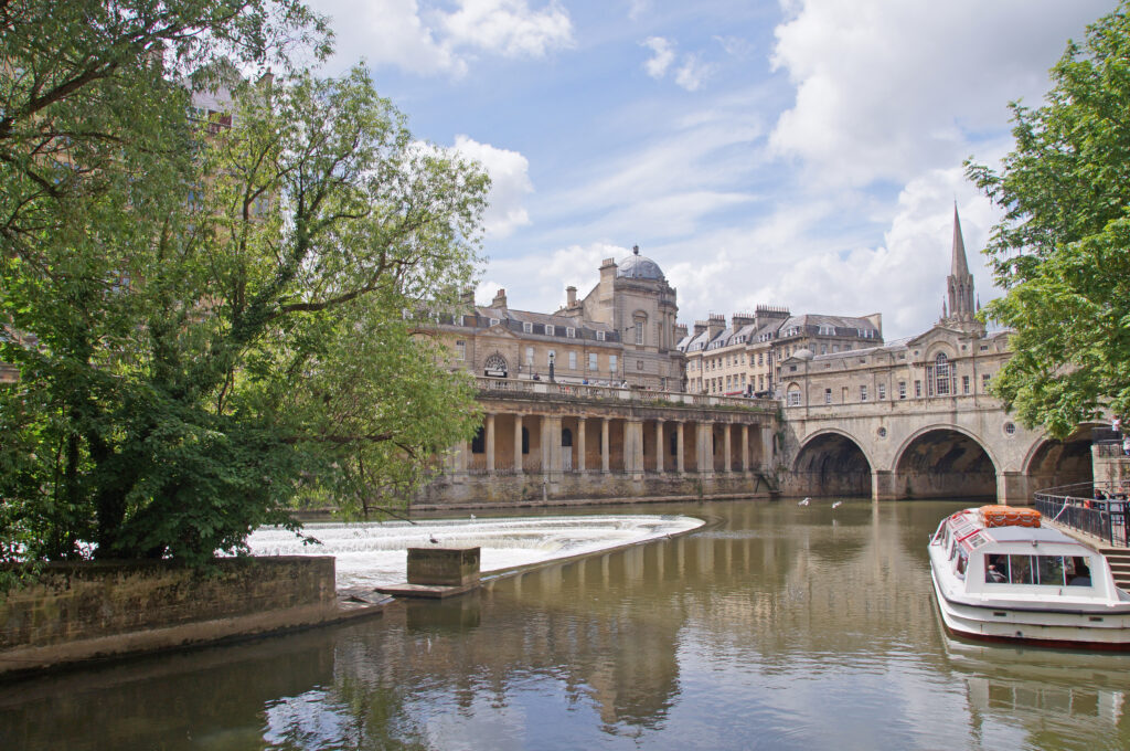 River Activities: Regular boat trips depart from the bridge, heading upriver toward Bathampton.